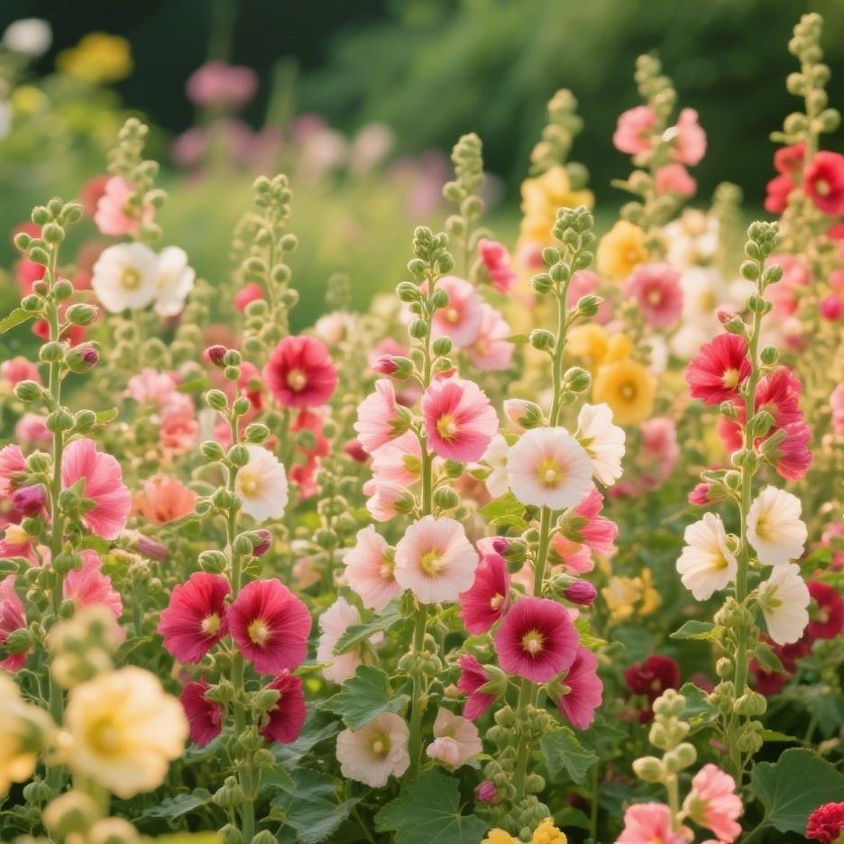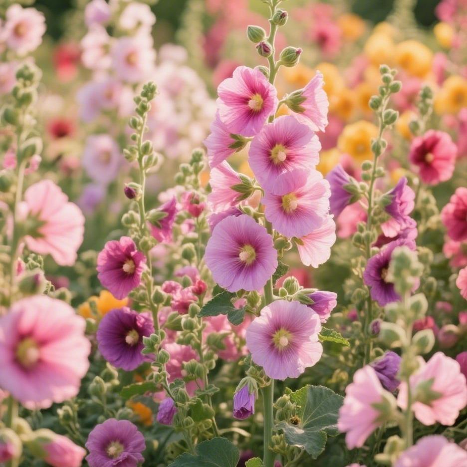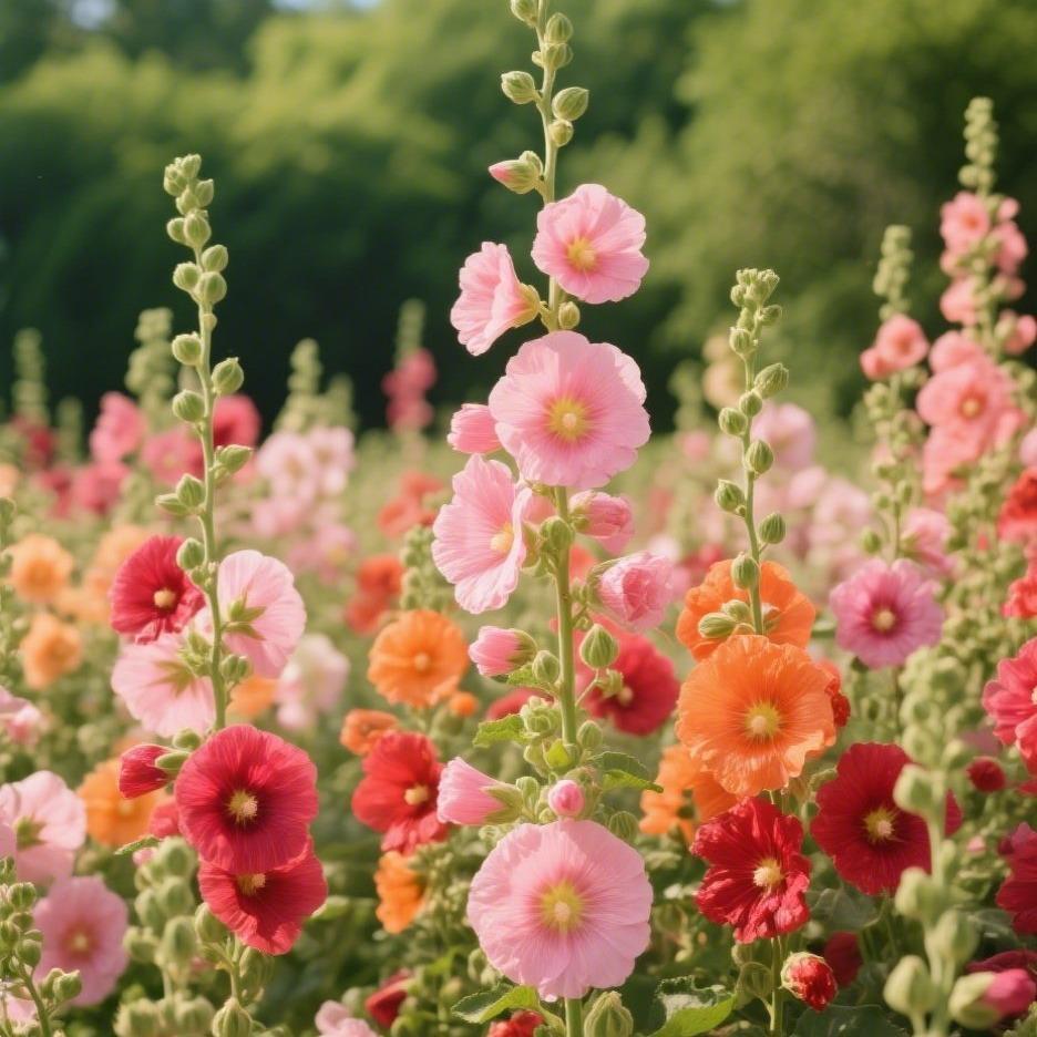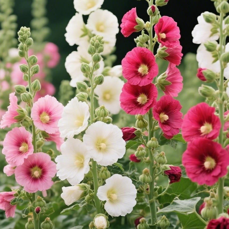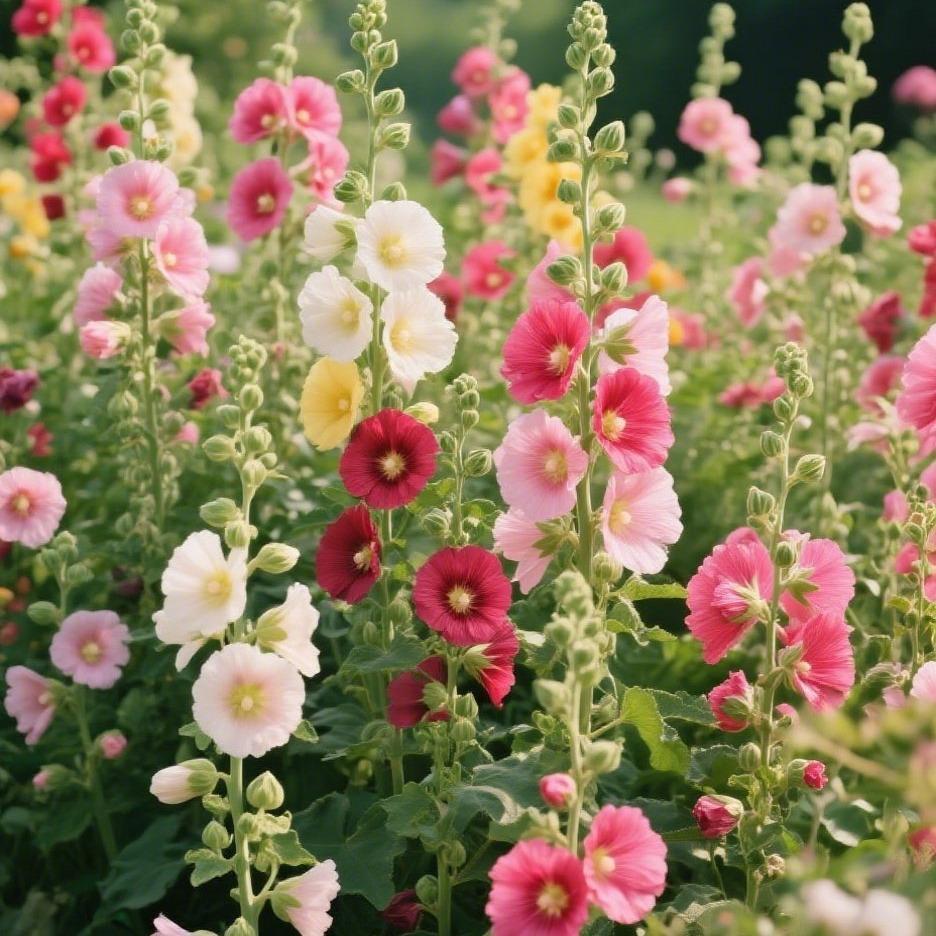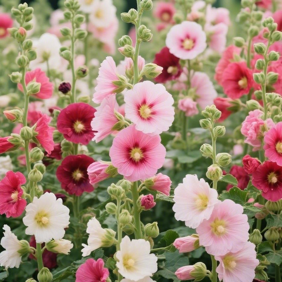 200pcs Mixed Color Hollyhock Seeds – Elegant, Vertical Flowers Loved by Bees and Butterflies