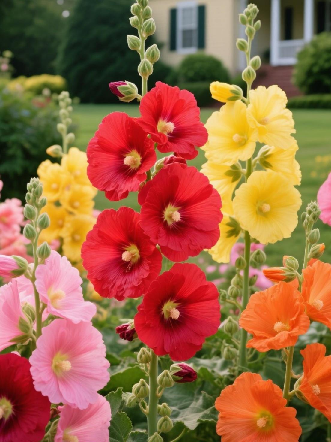 200Pcs Rainbow Hollyhock Seeds – Mixed Colors, Tall and Elegant Blooms for Garden Walls and Vertical Displays