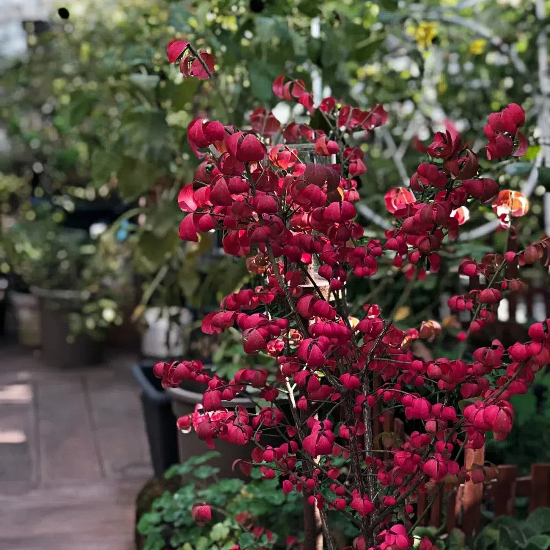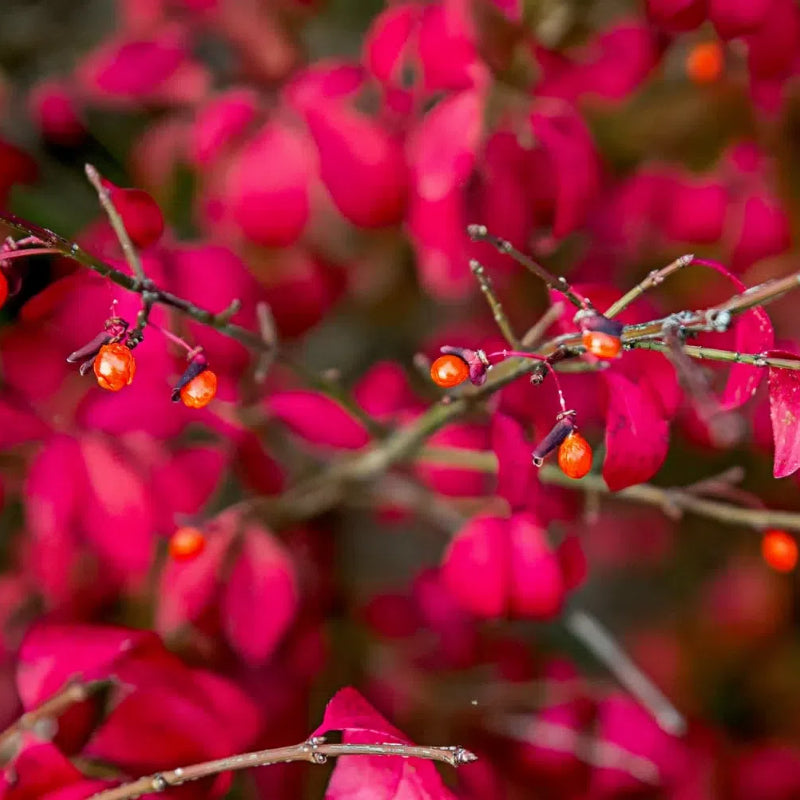 The Burning Bush (Euonymus alatus) is a stunning deciduous shrub that lives up to its name with its brilliant red foliage in autumn. A garden favorite for its dramatic seasonal transformation. this hardy shrub brings vibrancy and structure to any outdoor space.