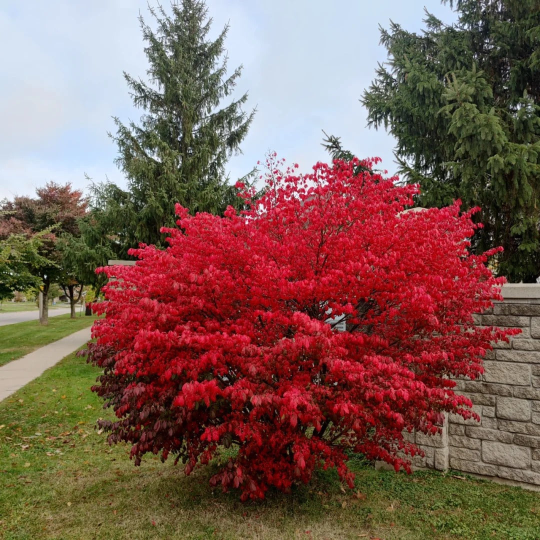 The Burning Bush is famous for its fiery red foliage in the fall. As temperatures cool. its deep green leaves transform into a blaze of red. creating a spectacular display that lights up any garden. This bold color makes it a fantastic choice for adding autumn interest to your landscape. 🍂🍷
