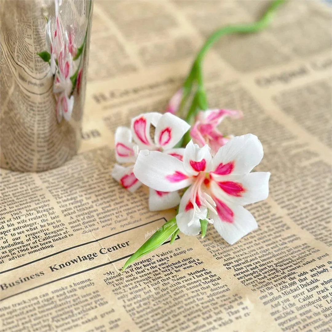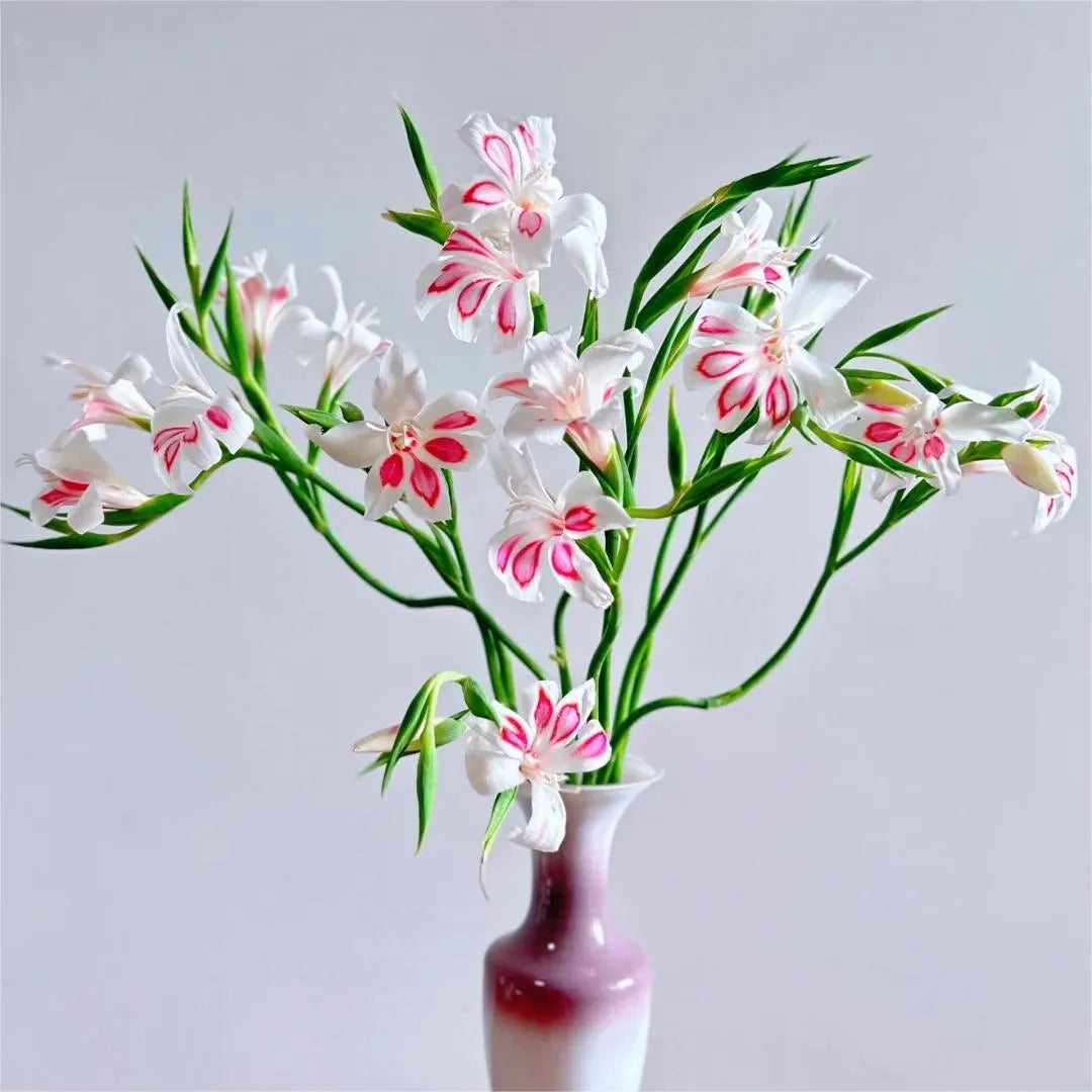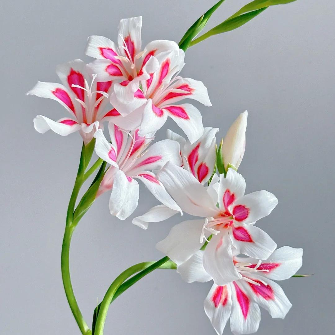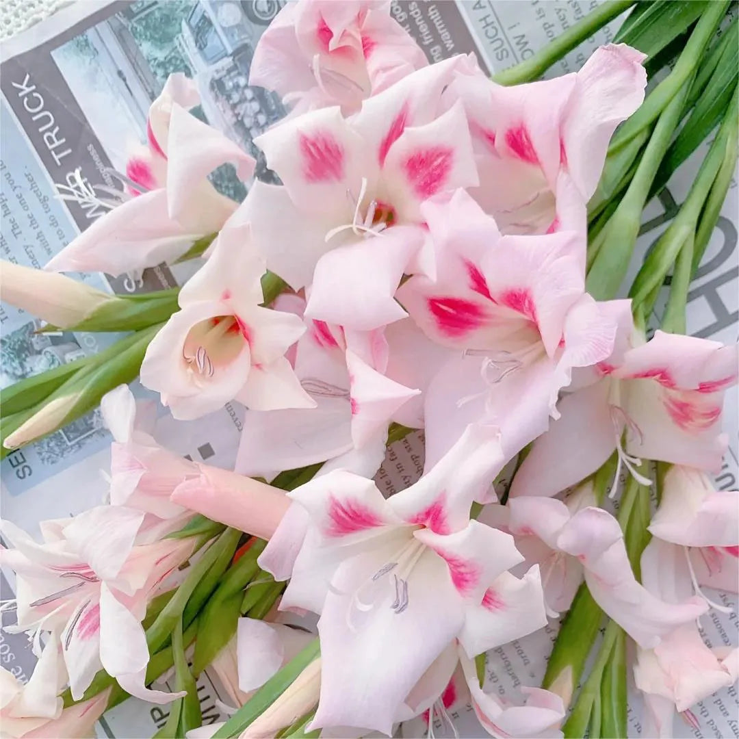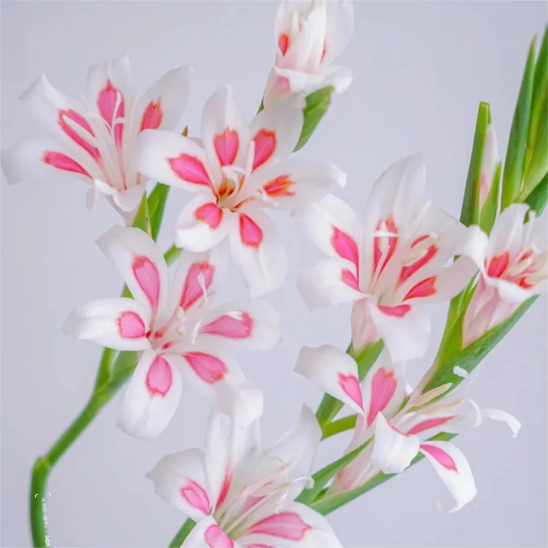 💖Cat's claw gladiolus is much smaller than ordinary gladiolus. and its branches are thinner. Overall. it gives a delicate and beautiful feeling. The pink patterns on the petals resemble pink kitten paw prints on the petals. which makes the whole flower look soft and sweet. and makes people feel happy just by looking at it.