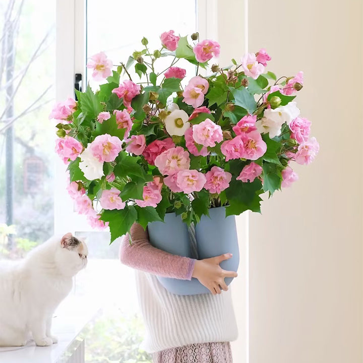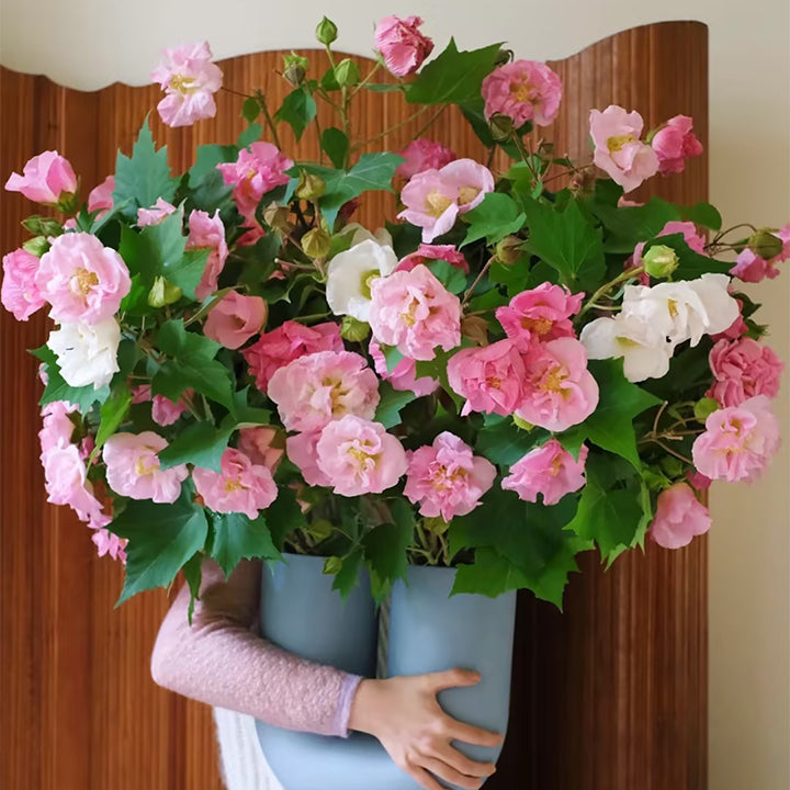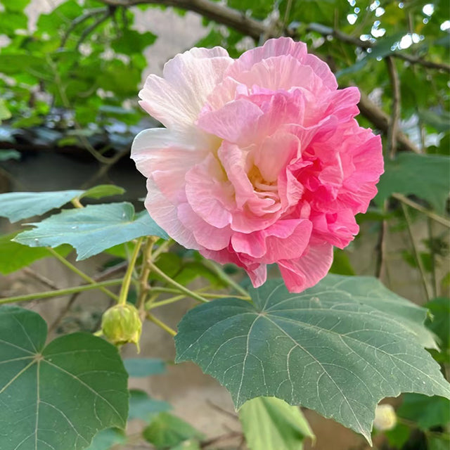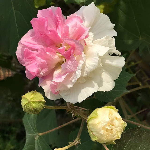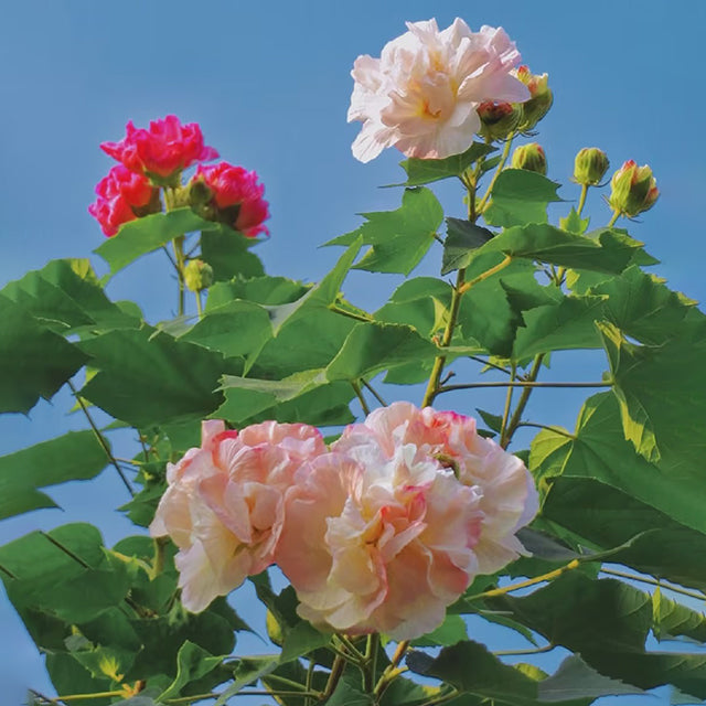 Its botanical name. Hibiscus mutabilis. refers to the seemingly ever-changing flower colors. The flowers are huge. and 6-inch blooms in your fall landscape are a sight to behold. Beginning in late summer. the flowers open nearly white. and then turn pink and finally a bright red as they senesce at the end of the day.