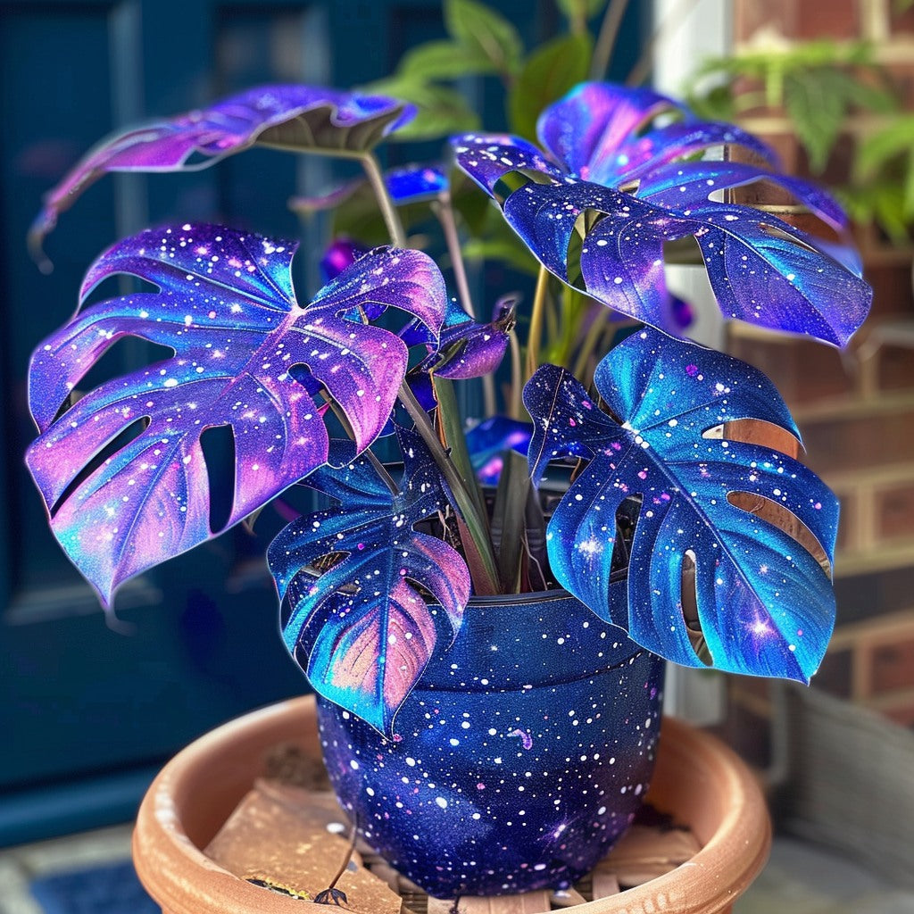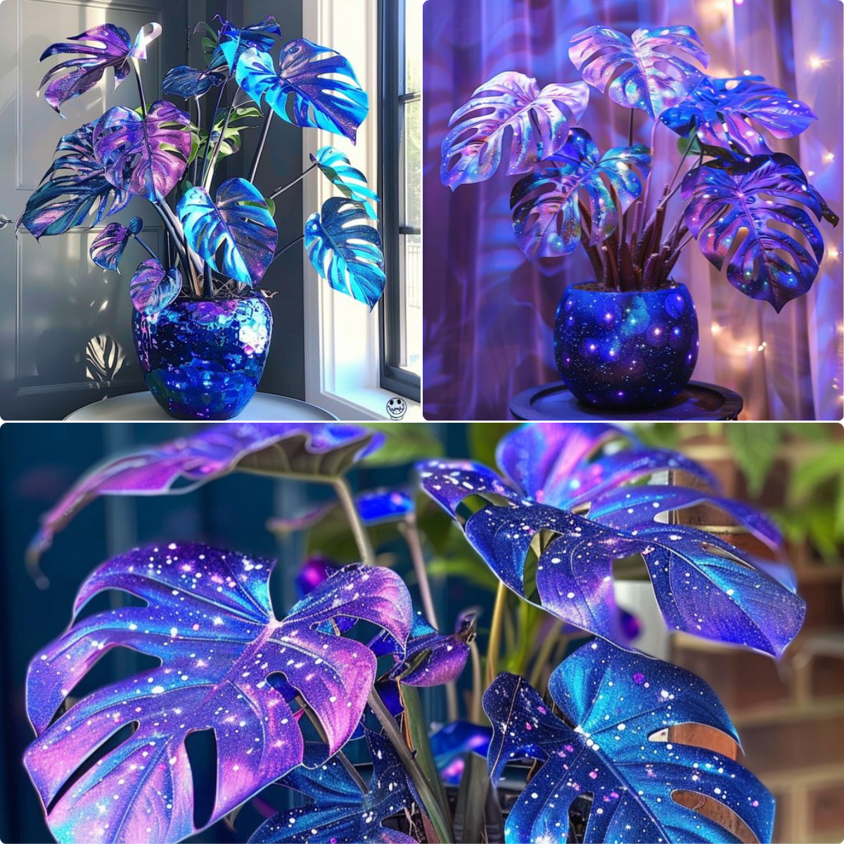 🌺This captivating Monstera plant is truly out of this world. with its breathtaking. galactic-inspired foliage. The large. striking leaves display a mesmerizing blend of deep blues. vivid purples. and shimmering iridescent hues. evoking the beauty and mystery of the cosmos. The dramatic. almost otherworldly coloration and patterns on the leaves create a sense of awe and enchantment. transforming this Monstera into a stunning. one-of-a-kind botanical centerpiece.