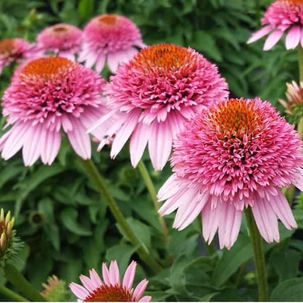 A charmer! Pretty pink 3” flowers with dark raspberry pink pom-pom cones blanket the bushy foliage. Butterflies flit and flutter with never-ending butterfly kisses as they sip nectar from one of their favorites. It's hard to imagine a sunny perennial border without Coneflowers. Butterflies love the flowers. birds love the seeds and we love the long-lasting bouquets.
