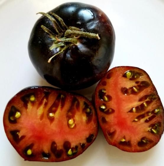 We've never seen a tomato with so many anthocyanin pigments! This tomato breed is black and pink on the outside. with exceptionally deep red flesh that's sweet/slightly acidic and luscious. Fruit is modest beefsteak-type slicer. weighing up to 8 ounces. and the flavor is as good as its outstanding antioxidant content! It's great for canning. salads. or burgers. It is extremely meaty. making it amazing for canning.