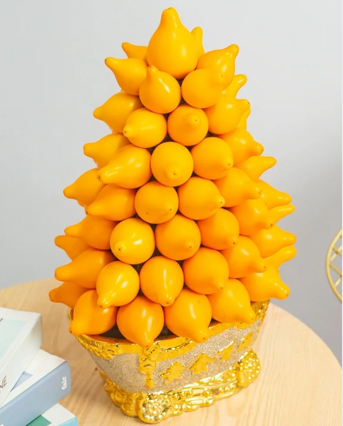 The golden and full shape. 🍊. is paired with the flower language of "well-being of all ages. and good gold and silver". which not only has an auspicious meaning. but also symbolizes the five blessings coming to the door and the house full of gold and jade.