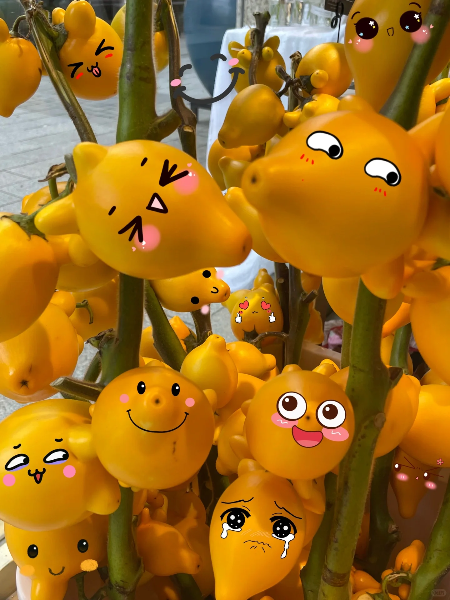 💛🧡Introduction: Milkshake. also known as golden fruit and five-finger eggplant. is often used for cultivation and ornamental due to its beautiful fruit shape. There are several golden fruits hanging on a branch. They look like lemons at first glance. but upon closer inspection. they have small tentacles. It looks like a little duck and a little squid.🦑