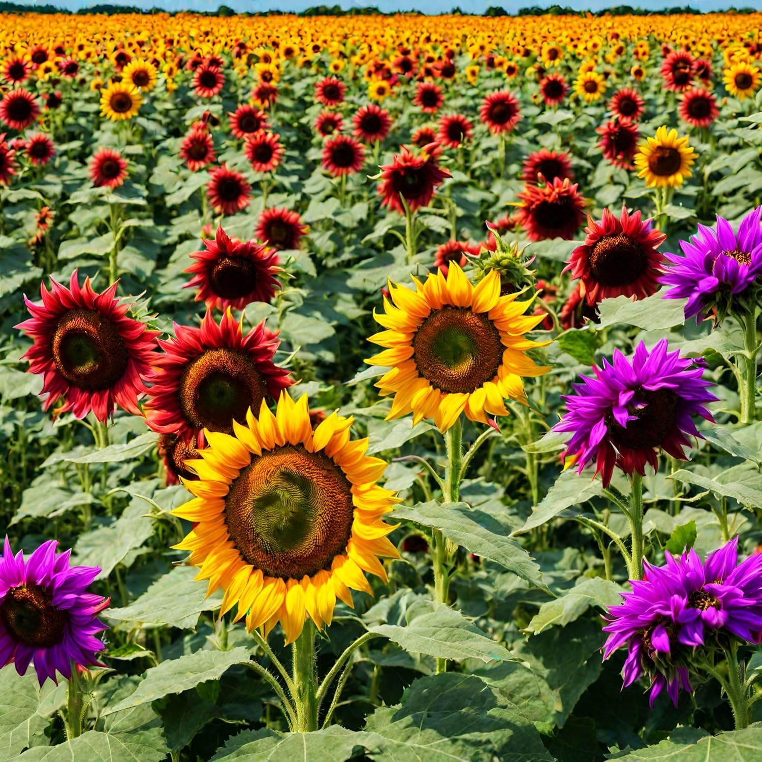 Transform your garden into a vibrant paradise with our 50+ Mixed Color Sunflowers! This spectacular mix of sunflowers in bold yellows. fiery oranges. deep reds. and multi-colored hues will bring cheer and beauty to any space. Perfect for gardens. flower borders. and bouquets. these sunflowers are an easy-to-grow favorite for gardeners of all levels.