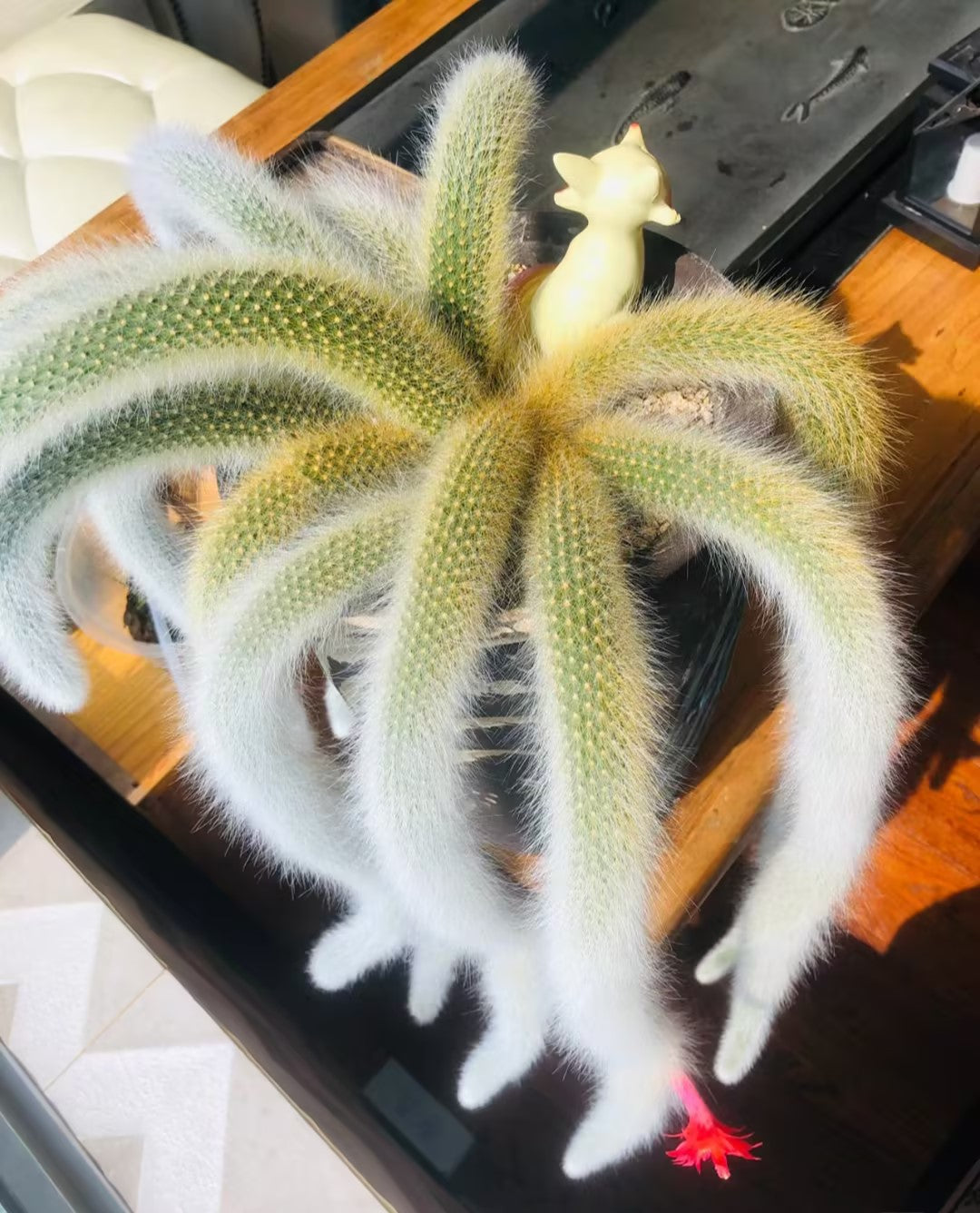The Monkey's tail cactus has a peculiar shape. The slender white hair column is similar to the tail of a monkey. It is free-flowering and the outsize bright red blooms are particularly decorative. It is an exotic succulent plant grown in USDA zones 9-11 reaching 12-18 inches in height. Monkey's tail cactus is easy to grow and low-maintenance in sandy and loamy soils. With a little bit of patience. you can enjoy this wonderful plant for many years to come.