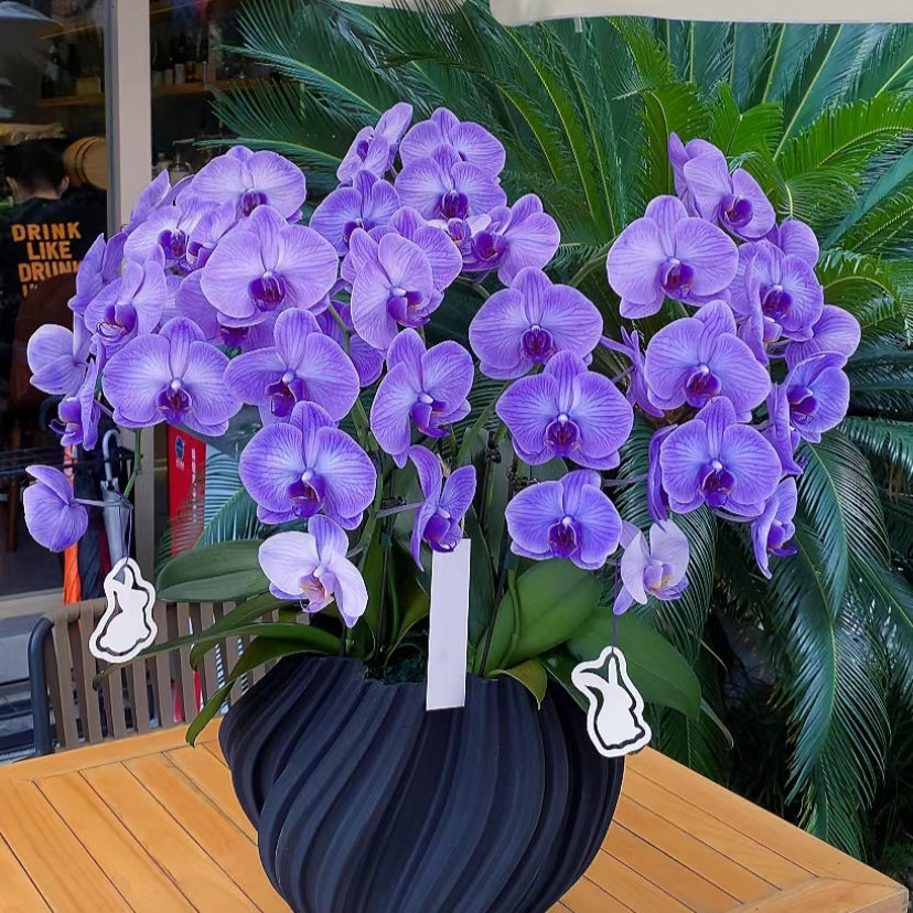 Phalaenopsis. named for its flower posture resembling a butterfly dancing. has a long flowering period and a large number of flowers. symbolizing happiness. longevity and abundance. The flowers of Phalaenopsis are gorgeous and delicate. with rich and lively colors. The common colors are pink. purple. orange. red. white. purple blue and other colors. and there are stripes and line changes.