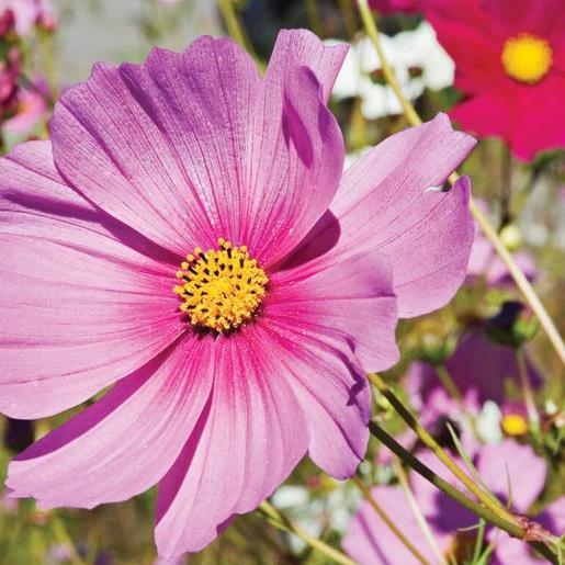 Cosmos bipinnatus. Reliable and well-loved single daisy shaped flowers with yellow centers bloom in white and various shades of pink.... Read more