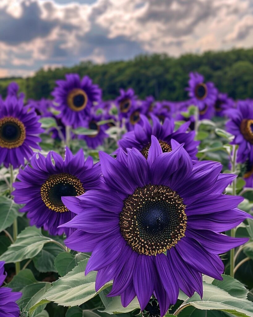 Perfect for creating a show-stopping display in large garden beds or as a unique backdrop in a landscape. These purple sunflowers are also ideal for cut flower arrangements. adding a pop of unexpected color to any floral display.