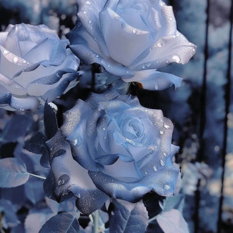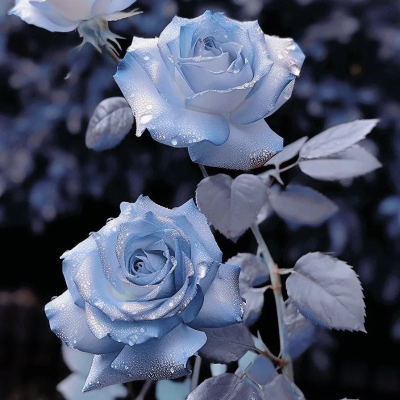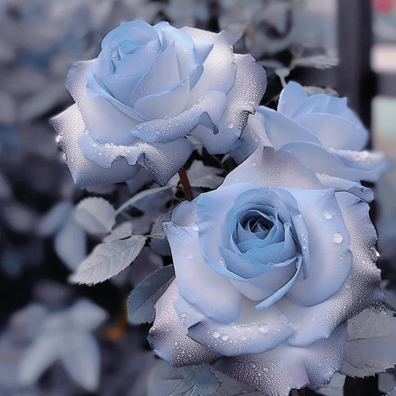 Blue chill rose. pure blue flowers like snowflakes. are unique in the sea of flowers. It attracts the eye with its unique color and delicate petals. exuding a fresh and mysterious charm.