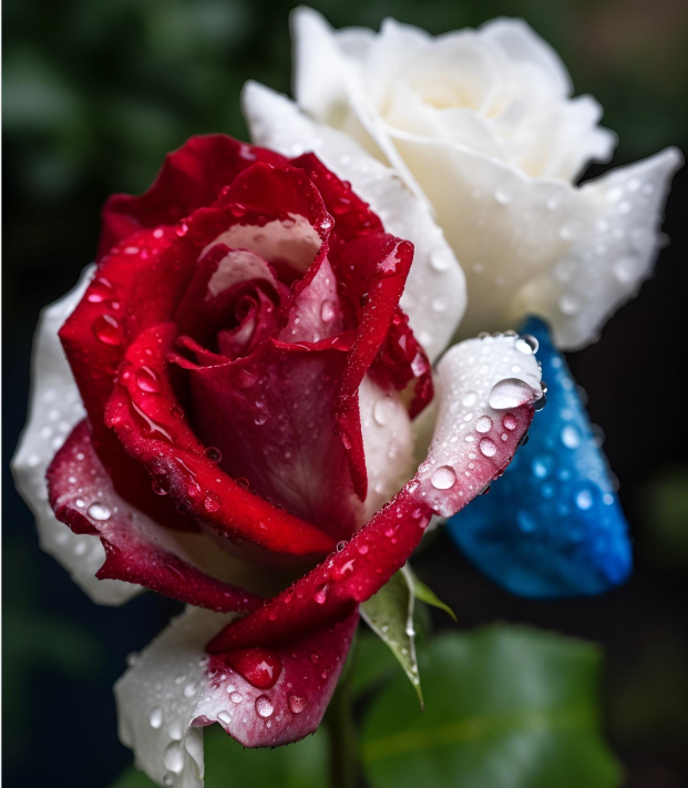 Symbolic meaning 🎨🌹: Red represents passionate love. white represents a pure heart. and blue symbolizes tranquility and dreams. The combination of these three brings romance and beauty to your garden.