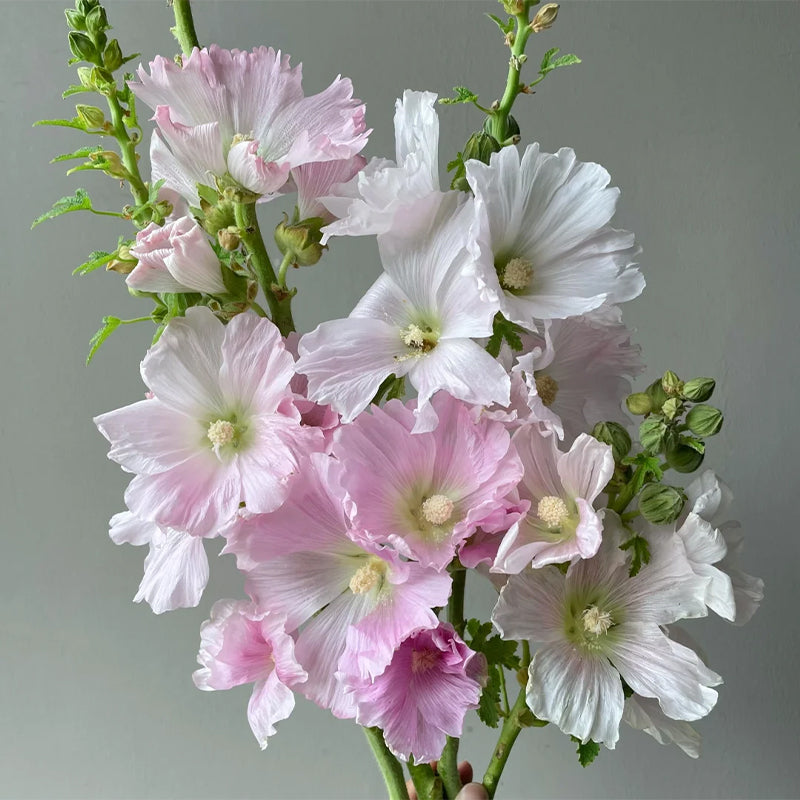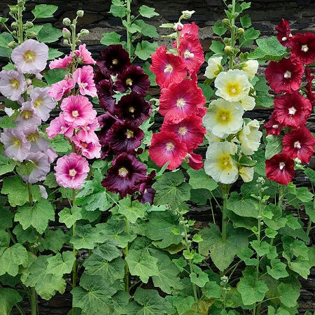 A garden classic. popularly found in English and cottage-style landscapes. Hollyhock Single Mix features a lovely range of pinks and reds blooming summer into fall.