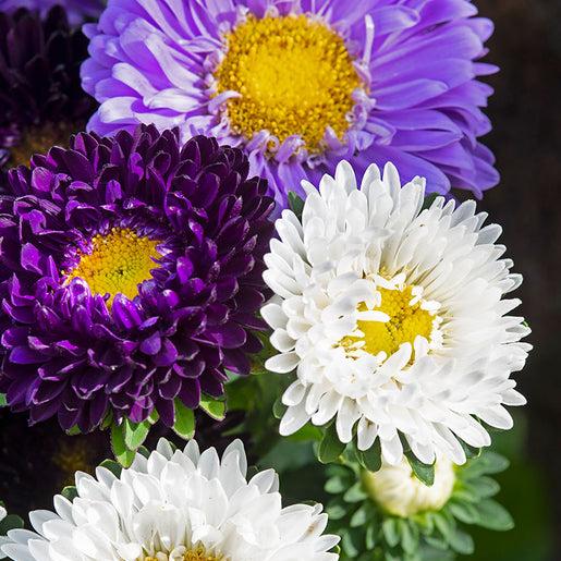 Callistephus chinensis. The Blues Mix is an excellent choice for the cut flower garden. It blooms from July to October... Read more