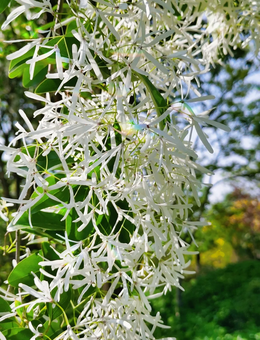 A fringe tree can be a delightful addition to your garden if you are looking for a blast of white in the spring. The blue fruit of the female plants can add a touch of color in the fall. Birds like to eat the fruit. so this can be a nice addition to your wildlife garden. Also. a fringe tree can be planted in a city yard since it can handle city pollution.